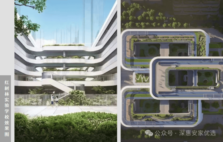 金地环湾城配建了投资超8亿的红岭教育集团红树林校区,这是一所九年一贯制72班(小学48班+初中24班)公立学校,由全球TOP10设计事务所AEDAS设计,采用"绿色校园"理念,配备智能化教学设施。