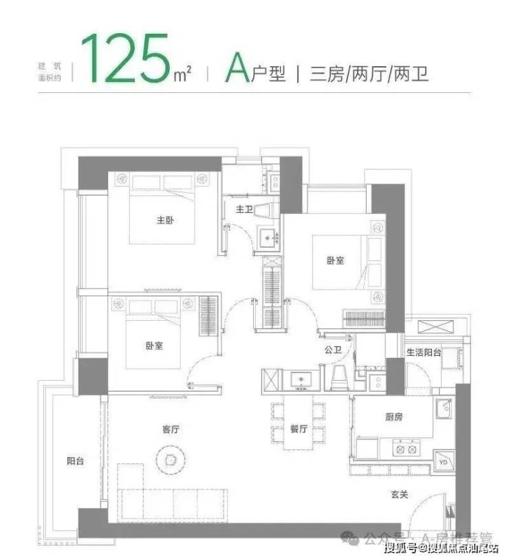 瞰景三房,飘窗、阳台拉开居住视野,主卧私享功能产备 LDK一体化设计,打造无边界、社交化的餐客厨系统