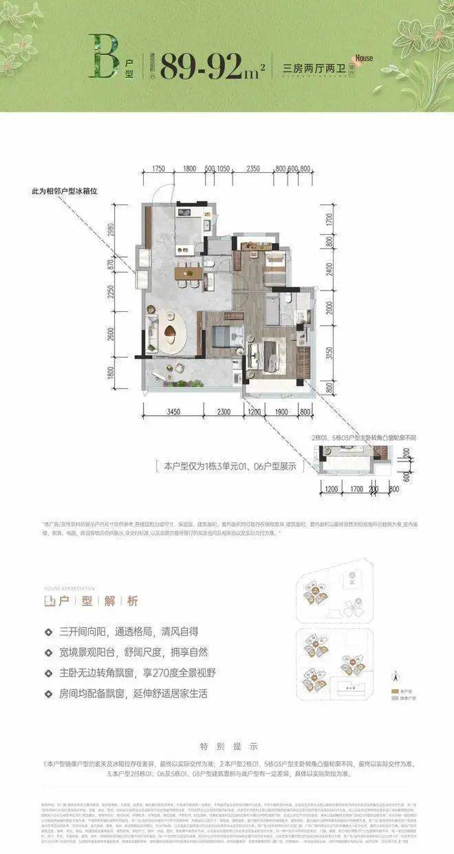 价格方面也相当有吸引力,毛坯限价4.79万/㎡,折后单价约4.5万/㎡,总价288万起。主力户型89 - 92㎡三房,总价区间在410 - 485万,性价比超高。
