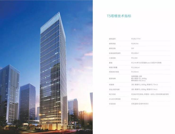 前海华润金融中心总建筑面积约34万平米,规划有3栋国际甲级写字楼(T1、T2、 T5),其中T5建筑面积约109152平方米,建筑高度约249.4米,共53层,其中地下4层,地上包括裙楼3层为商业,6-53层为写字楼,将引进国际金融及现代服务等行业的企业总部。前海华润大厦售楼处电话:400-088-3336(营销中心)