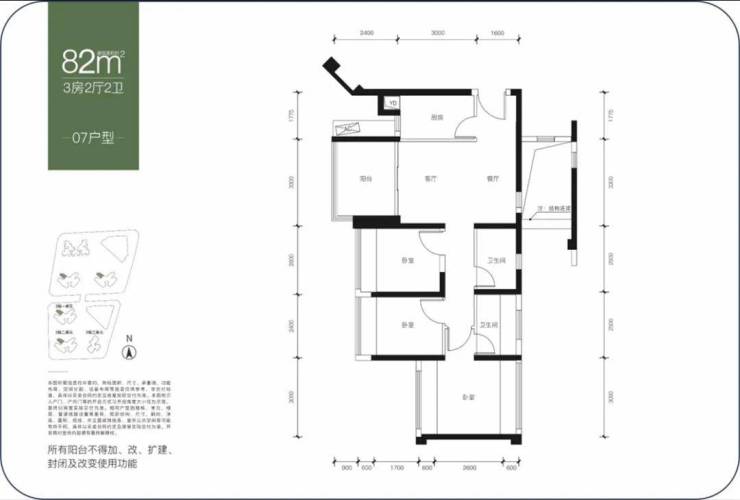 建面约82㎡,三房两卫,竖厅,动静分区结构,独立的一条腿,短进深大开间,静区部分尺度适中,客厅餐厅处有开窗,虽然对着通风井进光一般,但通风非常好,主卧两侧完全通透,一侧做衣柜预留开窗依然通透,如果不打柜子更是无敌,82㎡做三房两卫产品力是非常强!
