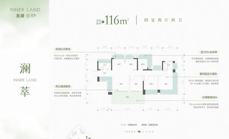 南北通透奢境 全明南北通透格局,明亮无死角;约16m南向宽幕,清风四季穿堂。