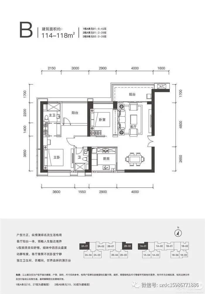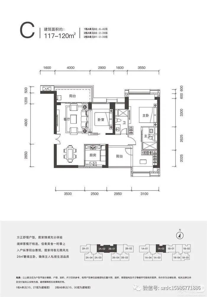 C户型117-120㎡ 1栋A单元-02、6-42层 2栋B单元-02、2-39层 2栋B单元-01、2-39层