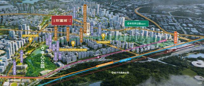 ·半月环公园(规划中):约48万㎡活力绿洲,链接城市繁华与自然纽带,财富城二期矗立半月环公园头排,将公园美景纳入塔尖居住视野,尽显“曼哈顿中央公园”式享受。