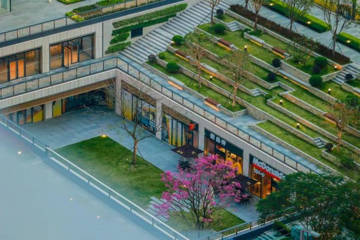 该社区的公共空间比例及特质各有不同。在地块东南面,一个拥有着丰富绿色种植和郁郁葱葱的树荫下的超大下沉花园,将形成了该社区的商业心脏地带。所营造的空间犹如纽约的洛克菲勒中心广场。它是一个咖啡亭,精品商店和公共艺术林立的活力、繁荣、商机无限的广场。