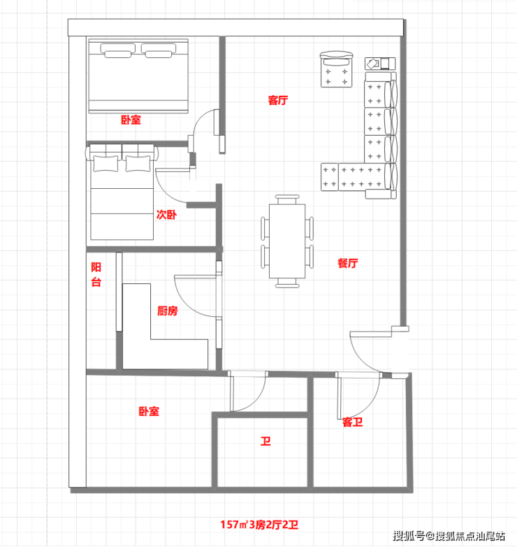 157㎡三居室,双卫,售价区间为650-800万元,单价在4.1-5万元/平方米。