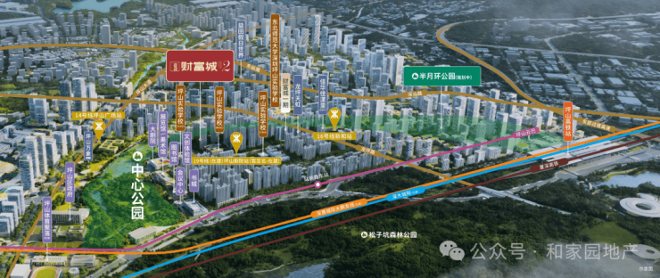 •家门口三地铁环绕:14/16/19号线(在建),坪山广场站、新和站、坪山剧院站(在建)三站环绕,快线6站到大运、13站直达岗厦北,便捷换乘畅达各区核心;
