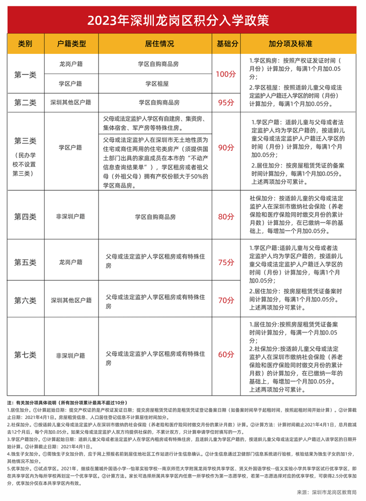 下图为龙岗街道小一、初一积分情况,数据整理自网络、仅供参考,以教育局和学校公布为准。