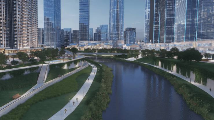 ▲河道左侧是瀚府,右侧未来将是万象商业(示意图,仅供参考)