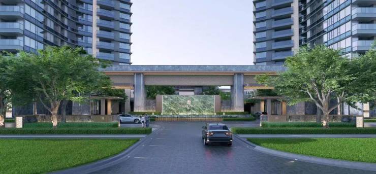 门仪:约70m宽高定奢阔豪门主入口,斥重资引入绿奢原石照壁、天然花岗岩门头,采用鲁班尺吉数,蕴藉东方;