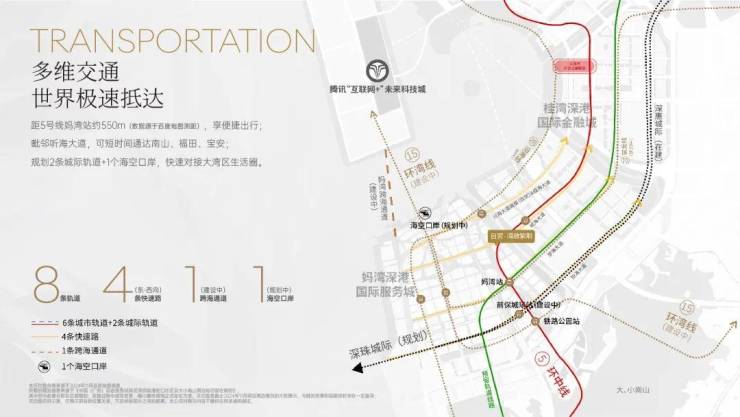 距5号线妈湾站约550m,毗邻听海大道,可快速通达南山、福田、宝安及大湾区生活圈;