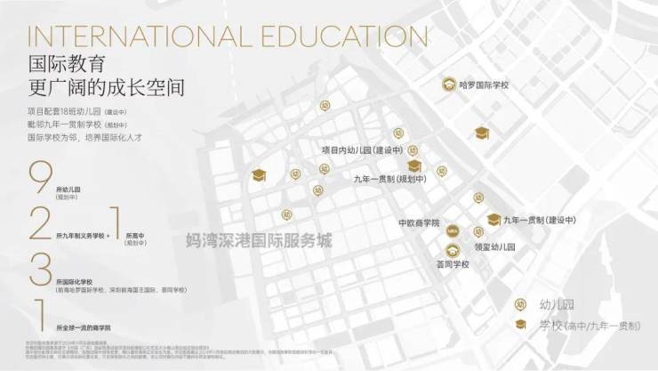 学校:楼下配备18班幼儿园,隔壁规划1所九年义务制学校;荟同,中欧等国际教育资源