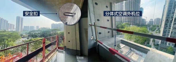 各户型均配置两处约500kg受力二级扣逃生装置,每处设2个安全扣(两处分别为:阳台、设备平台),与建筑主体同步浇筑,结构安全性显著提升。
