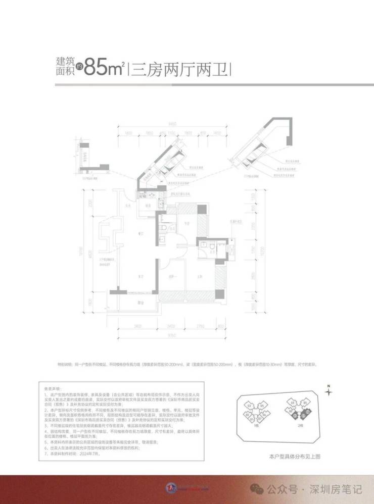 85㎡的三房两厅两卫,折后总价330-356万,单价3.78-4.03万/㎡。