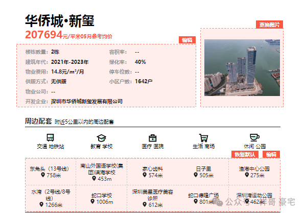 深圳“华侨城新玺”实际位于 南山区蛇口,是华侨城集团在蛇口核心区打造的滨海高端住宅项目,紧邻深圳湾,地理位置优越。其配套围绕“蛇口国际生活圈”展开,融合滨海资源与成熟城区的便利性,以下从具体维度详细说明: