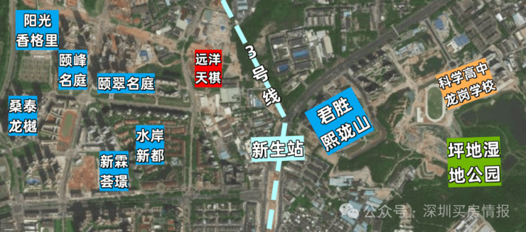 远洋天祺距离地铁3号线东延线和21号快线双轨交汇“新生站”直线距离仅约500米,是片区离地铁最近的在售项目,未来还有深惠城际前海保税区至坪地段,全长58公里,时速160公里/小时,以后从项目到南山、前海也很方便快捷。