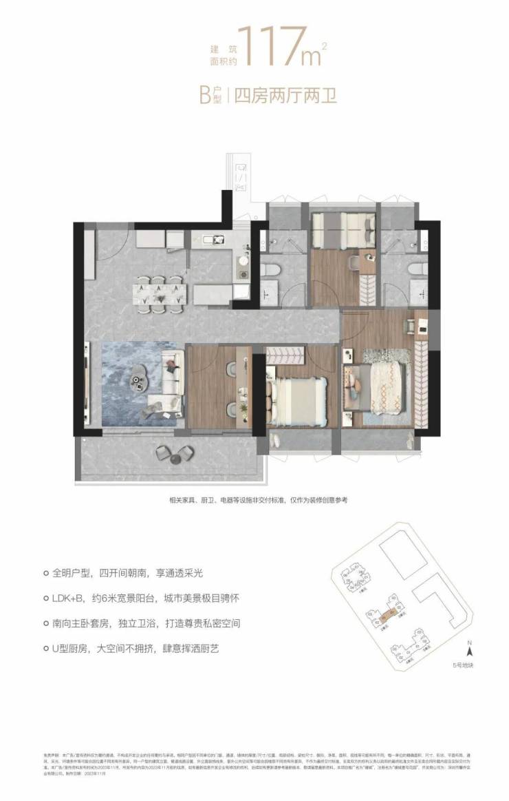 “南向全明四房LDK+B”设计,宽景阳台,拥揽四季