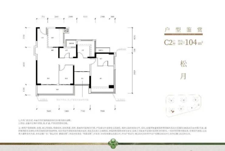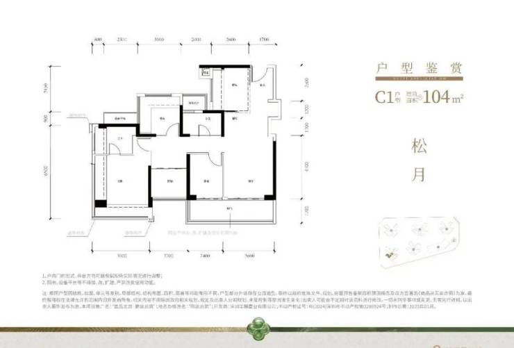 104㎡的4房2厅2卫,设计的是竖厅格局,进门入户玄关,客厅3.6米开间,LDKB一体化,S墙设计预留冰箱卡槽位,四开间朝南,主卧+1个次卧270°飘窗,客厅连接次卧出6米长大阳台,L型厨房,得房率约79.45%(不含赠送),西南或东南朝向。
