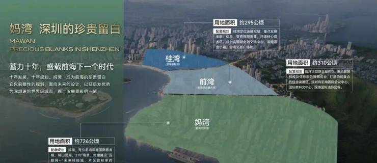 根据规划,妈湾有2.9平方公里的土地由招商局集团和前海管理局合资成立的公司统一开发运营,最新定位是前海深港国际服务城,与桂湾深港国际金融城共同组成了前海双核,是前海扩区后的首要、重点推进项目。