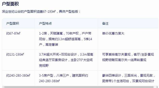 深业世纪山谷作为一个集住宅、公寓、酒店、商业和办公等多种功能于一体的高端综合体项目,具有地理位置优越、交通便利、自然景观丰富、配套设施完善、教育资源优质、医疗资源丰富等诸多优势。虽然项目存在一些不足之处,但总体来说仍然是一个宜居、宜业、宜投资的综合体项目。对于有意购买深业世纪山谷的购房者来说,建议提前预约看房以获取最新销控信息和可选房源,并结合个人需求和经济实力进行综合考量以做出最适合自己的购房决策。