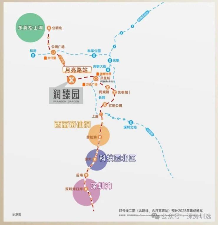 立体交通:轨道交通直线距离约600m到达地铁13号线月亮路站(建设中),1站凤凰城,9站到南山,2025年将推动13号线二期(北延)建成通车(信息来源:宝安日报),近享3纵4横公路网,咫尺松白路/东明大道双城市干道,东明大道松白路至东长路段已通车。
