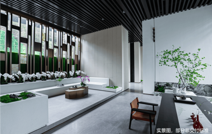 将新中式建筑精髓与当代格调完美融汇于大门之中;极致挑高尺度,尽显恢弘气度。