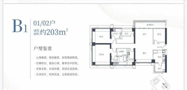 1栋二单元B1户型:面积约为203㎡
