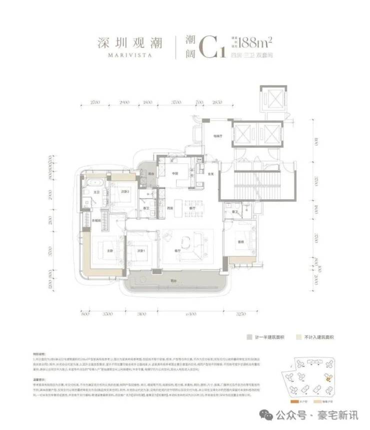• 建面约188㎡四房两厅三卫:南北通透端户,独立玄关+中西双厨,客餐厅超50㎡气场全开!约8米宽景阳台连通次卧,推窗即览前海湾摩天轮盛景,空中花园或家庭工作室随心改造。
