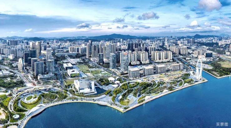 中央绿轴,前海新中心世界会客厅,汇百亿湾区公建,构建国际化绿轴慢行系统,为深圳唯一南北向、直面海湾、大规模的滨海公共空间