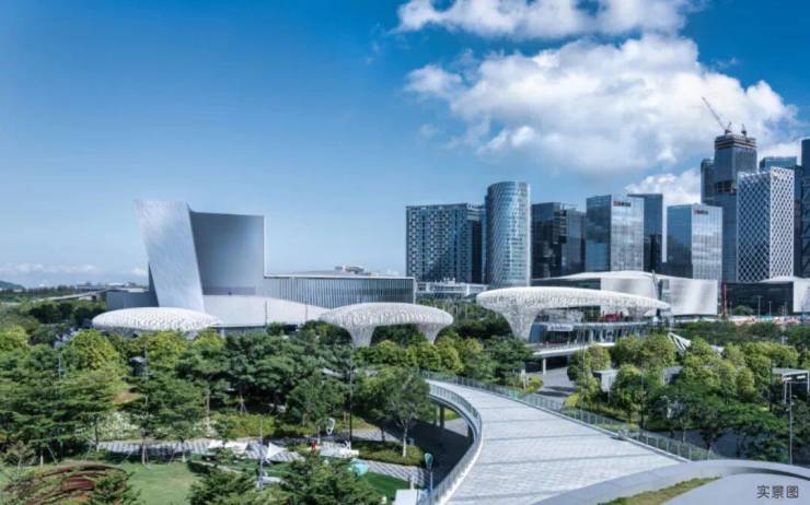 臻罕八馆于此汇聚,含青少年宫、宝安体育馆,及湾区民俗、公共文化艺术、工人文化三馆在建。更有获LEED认证的图书馆,及深圳新时代文化设施——湾区书城(在建中)