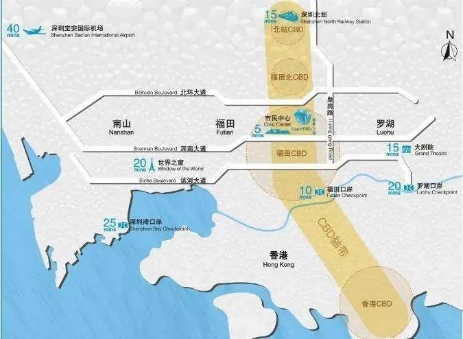 占据城市核芯区域,位居福田CBD北门户,南邻政商区,北与梅林商务区、深圳北站商务区无缝衔接,东承罗湖商圈,西瞰南山高新技术产业基地和前海自贸区。