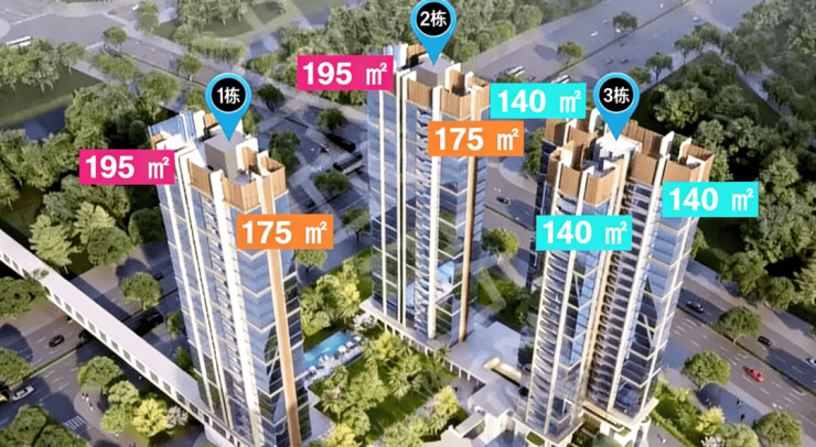 户型面积139-176-194㎡四房户型(每户都可以高端定制,改为奢阔三房户型),仅151套,纯住宅社区,无人才房、保障房,容积率仅3.1,3栋总高23层不超80米临河小高层,梯户比2T2户、2T3户。