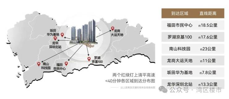深圳远洋城,家门口地铁17号线山厦站(规划),两个红绿灯(约1.7km)上清平高速,叠加地铁10号线、17/18号线(规划),一站到平湖枢纽,多维立体交通,约40分钟到达深圳各区中心。