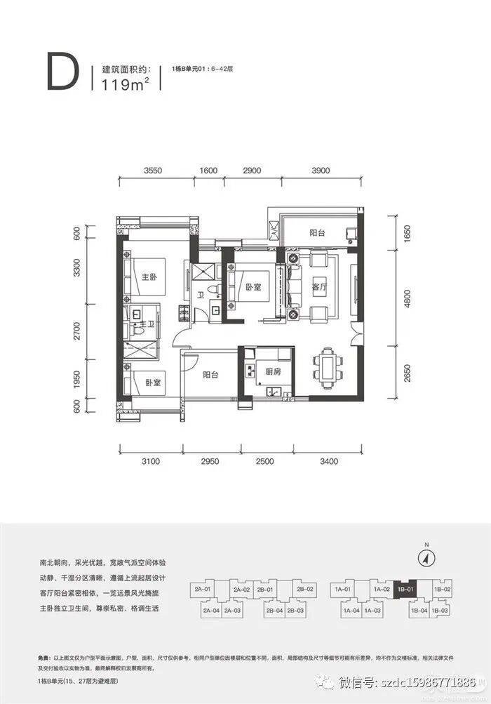 D户型119㎡ 1栋B单元-01、 6-42层