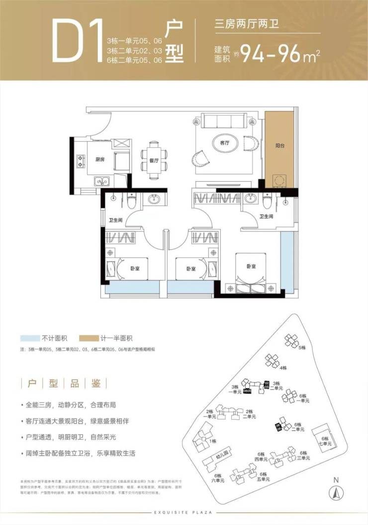 94㎡ 三房两厅二卫 总价280-310万