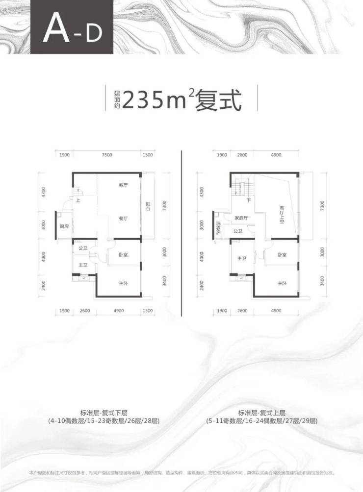 A栋D户型、约235㎡稀缺复式户型