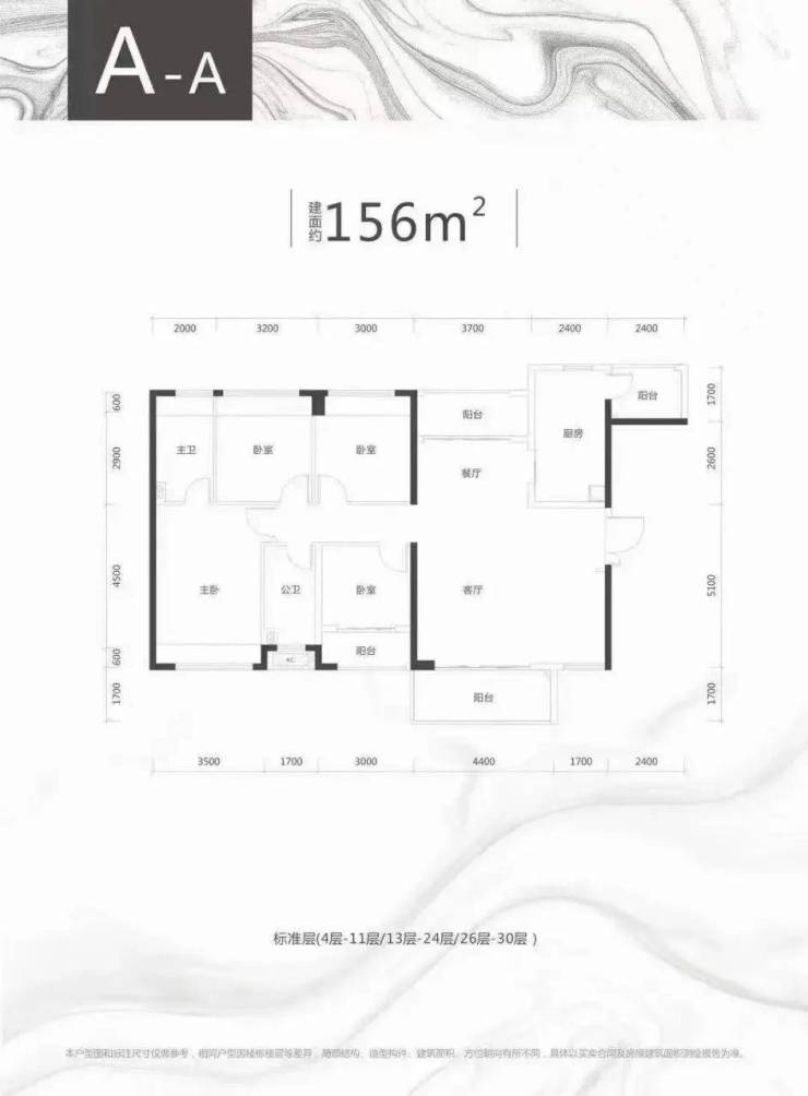 A栋A户型、约156㎡四房两厅两卫
