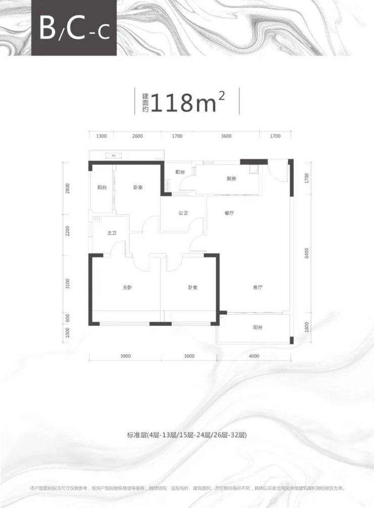C栋B/C/D/E户型、约100㎡两房两厅两卫),118-119㎡三房两厅两卫