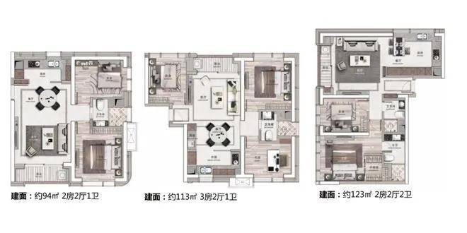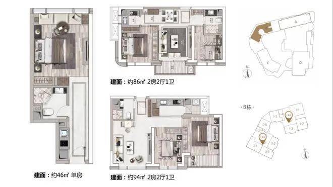 C座:建筑面积约52-95㎡(3梯8户) 217-519㎡(3梯3户)