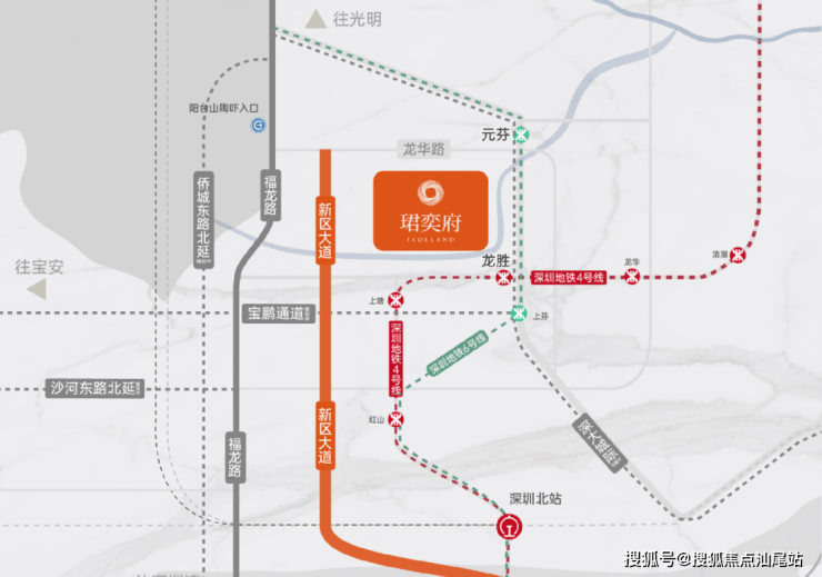 福龙路快速路,畅达福田中心;侨城东路北延(在建中)、沙河东路北延(规划中)、宝鹏通道(规划中)畅达南山、宝安,节省约20%通勤效率。