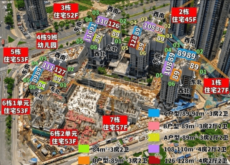 下面是二期住宅地块的分布图,共6个地块,待建成后将有25栋住宅,总高47-48层,1所九年制公办学校,2所12班制幼儿园+1所9班制幼儿园,这只是前面规划,后期可能会适当调整设计方案。