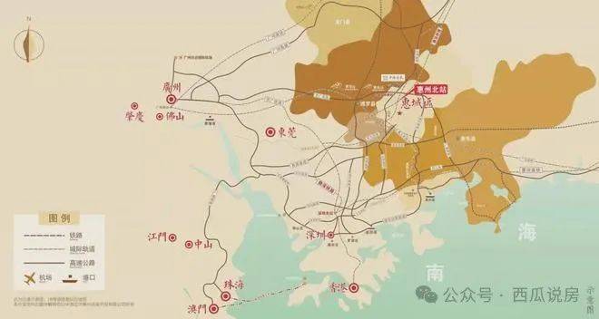 项目位于惠州江北片区北站新城,未来全国第五座TOD。在惠州市“南进北拓”战略支撑下,北站新城对标当年深圳北站片区,44平方米公里规划控制人口42万、北部区域因地利之便,率先接收到江北中心区经济的辐射,也能与江北共享同一份生活设施,享受到城市级配套生活,以达到居民对生活需求的及时响应,而且北站片区有临深NO.1的高铁枢纽惠州北站,三站通达深圳,接轨深圳和广州两大都市围,未来潜力更大于江北CBD。