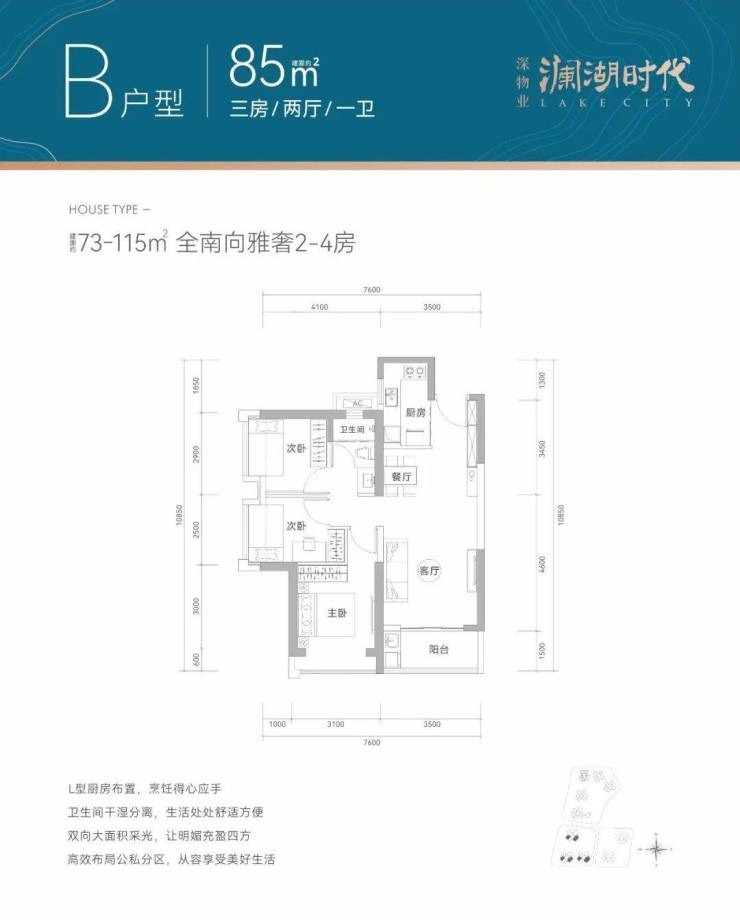产品面积段:建面约73-115㎡全南宽奢2-4房