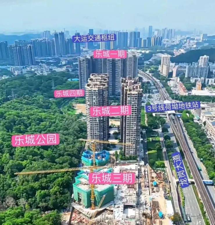 龙岗大运,乐城3期(备案名:乐宸花园)在2025年10月24日取证入市,本次首推1-3栋住宅,共527套房源,面积有83m²的3房2卫,99-115m²的4房2卫,133㎡的4房3卫户型,其中83平的3房户型整个小区仅有112套,99平的4房是主力户型,备案均价4.26万/㎡,备案单价4.03-4.42万/㎡,总价332-588万/套,合同约定在2027年10月15日带精装交房。