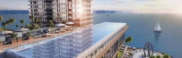 自带2.5万平中庭式商业。配套的一大亮点是5楼空中花园泛会所配备深圳首个悬空无边际海景泳池,约766㎡,全部为玻璃打造。