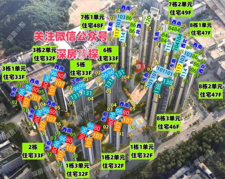 深业山水东城一期,总占地面积约4.16万㎡,总建筑面积约24万㎡,计容建筑面积约15.88万㎡,容积率2.33,绿化率21.14%,共由8栋总高32-33层的住宅组成,其中1栋1/2/3单元/3栋2单元住宅32F,2栋/3栋1单元/5栋/6栋住宅33F,4栋是1所21班制幼儿园。