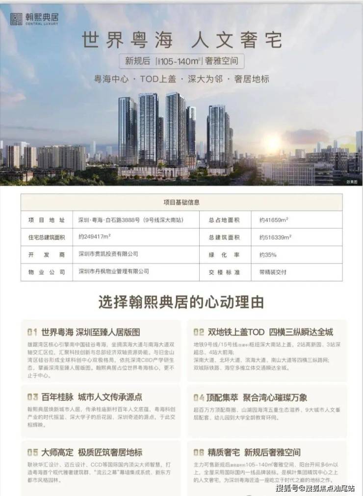 深湾CBD立足南山区“双核”战略核心,串联科技园、后海、深超总、深圳中央公园,聚合金融、科技、人文生态超级闭环,以多维战略产业叠加,重塑粤海价值天际线。翰熙典居,是继华润城之后深湾CBD又一人居地标之作,以时代中心之上的奢居基因,铸就跨越周期的矜贵人居恒产。