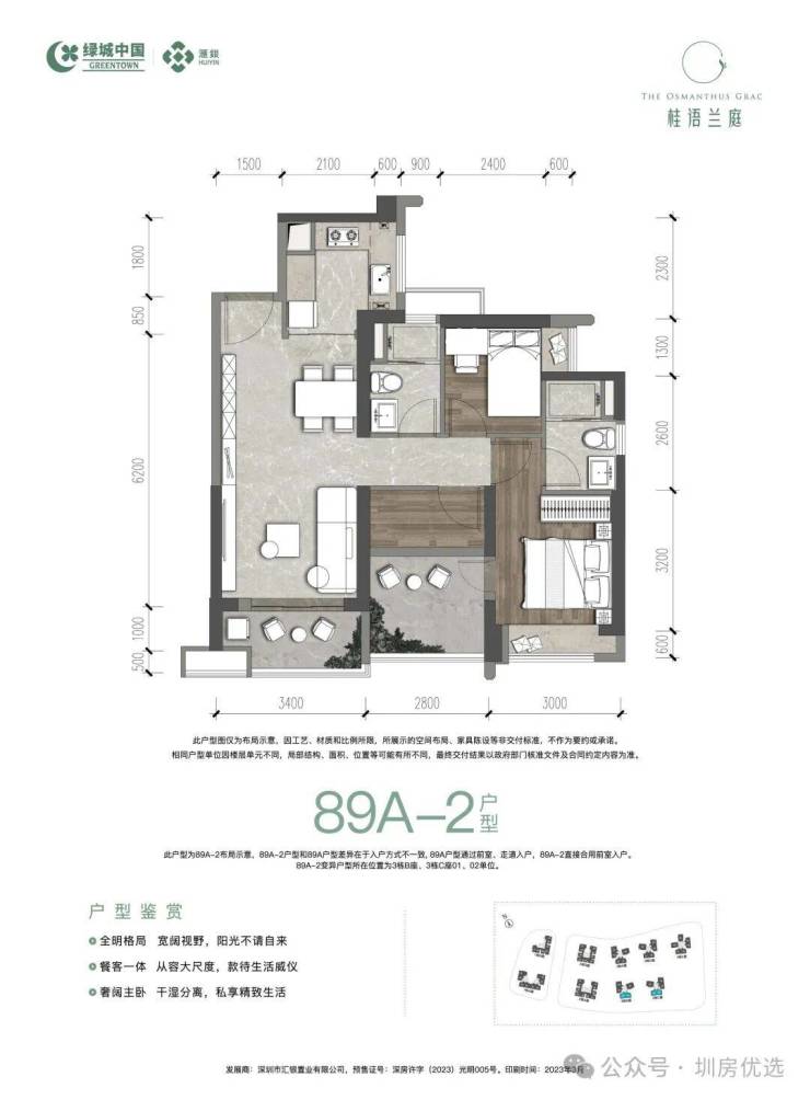 一期89㎡的3房2厅2卫,折后总价330-366万/套,单价3.7-4.11万/㎡。
