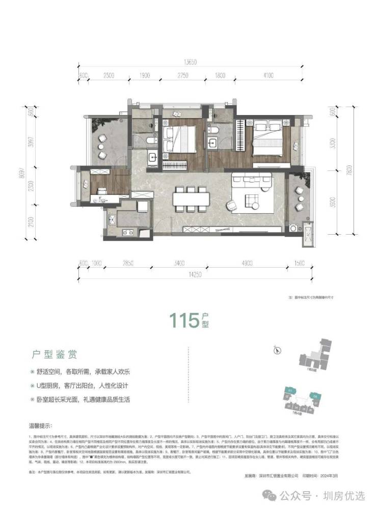 115㎡的4房2厅2卫(二期),设计的是竖厅格局,得房率:72.97%(不含赠送),阳台约5.84㎡西北或东南朝向。套内面积85.78㎡+赠送面积12.94㎡=实用面积98.72㎡,加上赠送后得房率约83.97%。