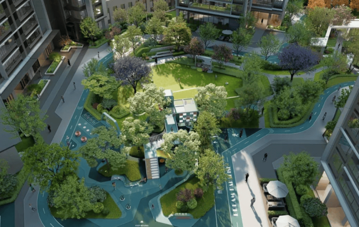 👉约1.3万㎡中央森系园林:片区内最大的社区园林,精制“四大隐奢空间”、“三大能量场域”,搭配森系儿童乐园、四季隐形轻氧跑道等,以顶奢酒店园林设计为理念,打造当代年轻人的城市微度假生活。